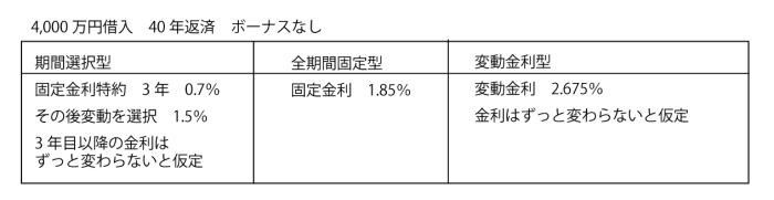 ここで、それぞれの金利タイプで住宅ローンの借入をした際の比較をしてみましょう。