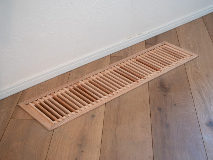 たとえば、竹内建設のpopke平屋モデルで採用されているのはBAQOOLというパッシブ換気のシステム。BAQOOLとは、機械設備を用いずに自然な空気の流れだけで家中を換気するシステム。給気口から取り込まれた新鮮な外気を床下で温め、家全体を暖房します。
