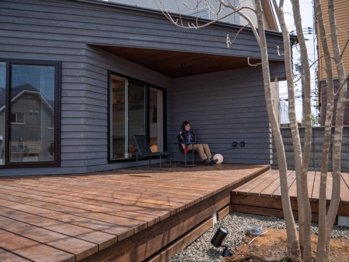 popke平屋モデルの庭工事中、一休みする設計 庄内