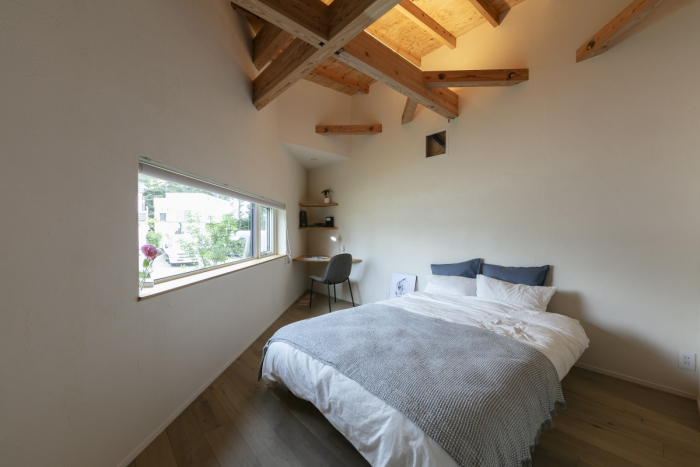 普段はあまり見ることの出来ない構造材はもちろん、断熱スペックにもこだわっています。こちらのモデルハウスはC値0.18のZEH仕様、高スペックモデルハウスです。