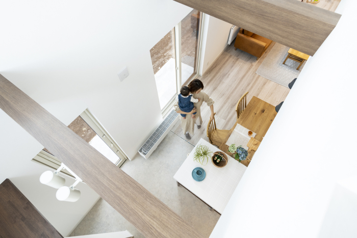 吹き抜けのメリットには、風通しが良くなり空調管理がしやすくなると挙げましたが、空間が広くなると冷暖房が効きにくくなる場合もあります。暖かい空気は上に、冷たい空気は下に流れるため、特に冬場は下階の寒さが問題になりがち。