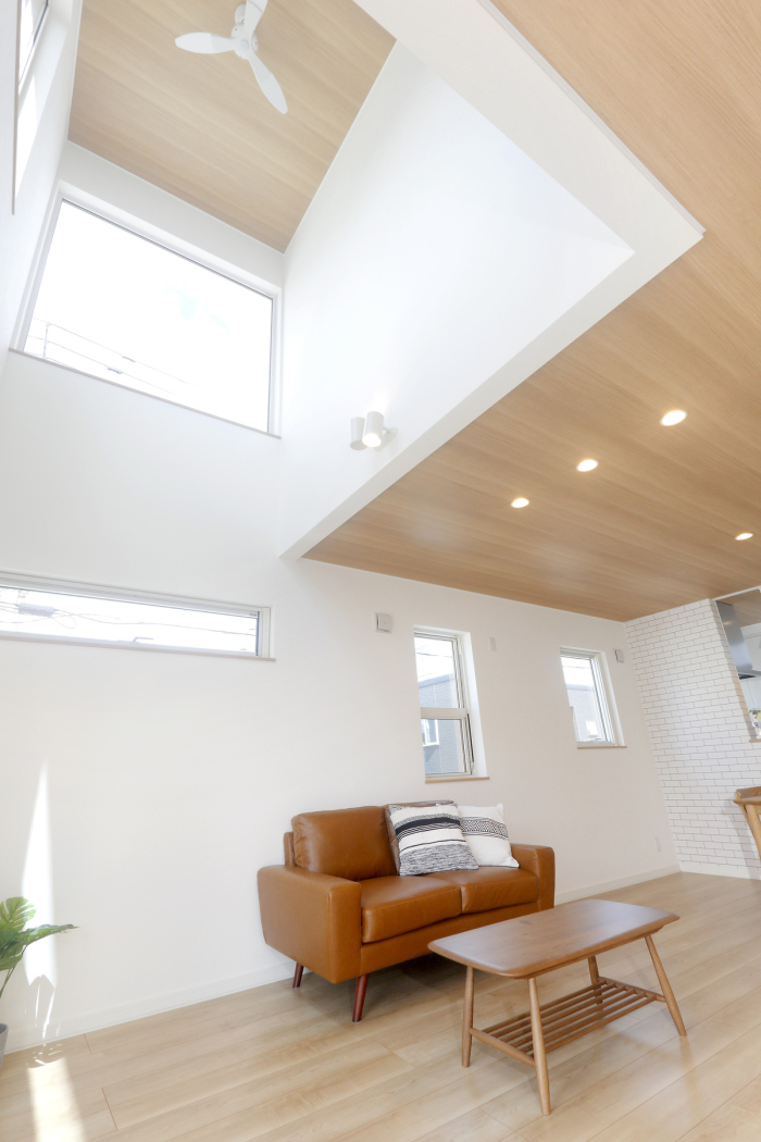 天井が高い部分にはロフトを設ければ、物置にも使えますし、高窓の近くでは日当たりもよく明るい空間として有効活用できます。