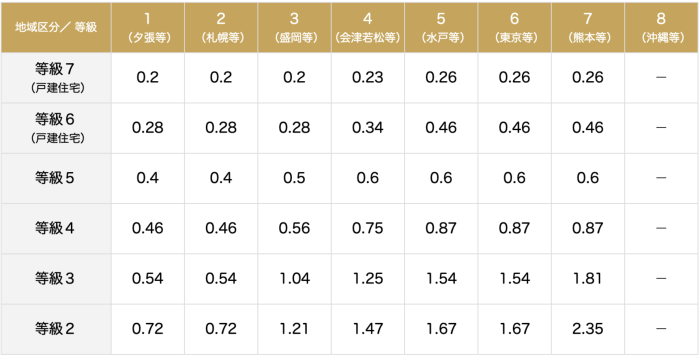 居住地域に合った適切な等級を選ぶ