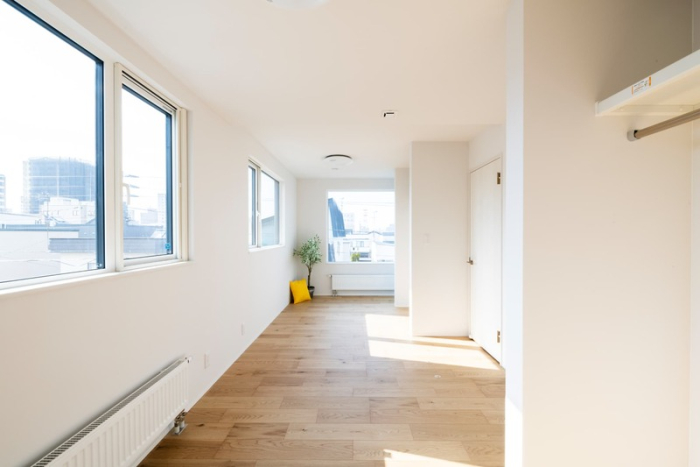 日が入りやすい3階は、開放感のある印象に。広い居室は、仕切りができるように扉が2つ付けられていて、家族の人数に合わせて3LDKにリフォームできます。