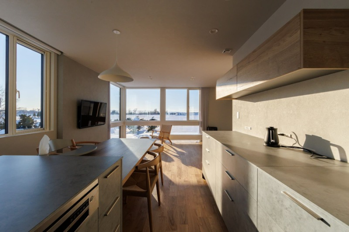 一面の雪景色というロケーションを活かし、リビングには大きな窓を設置。たくさんの光を取り入れて、開放的な空間を実現しています。