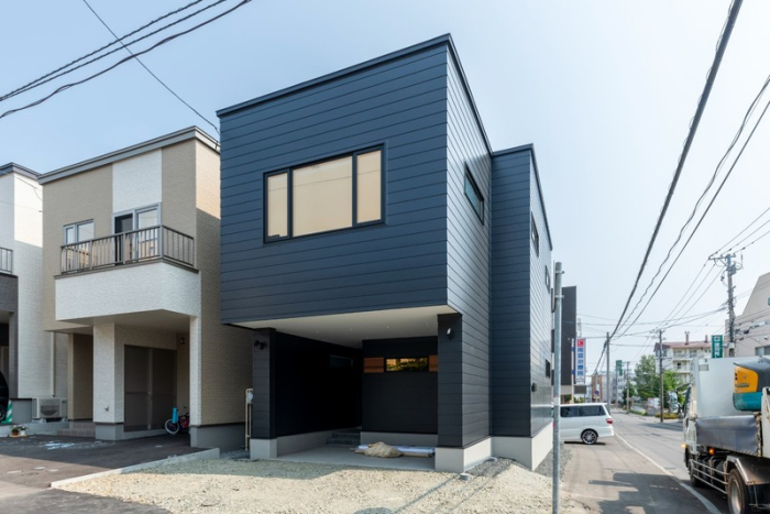 愛車を守れるビルトインガレージ付きのスタイリッシュな3階建て