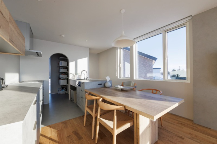 キッチンとダイニング側にも、たくさんの窓が配置されていて、レストランのように窓の外を眺めながら料理や食事が楽しめます。