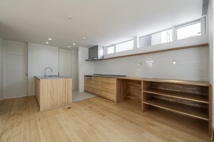 キッチンと横並びにダイニングテーブルを設置すれば「一体型ダイニングキッチン」となり、配膳や片づけが楽になります。