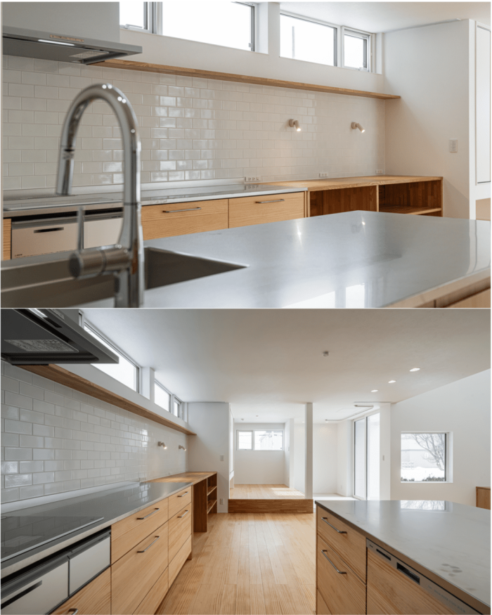 リビングとつながっているキッチンは、左右どちらからでも入りやすい「オープンキッチン」を採用しており、家族みんなで料理を楽しめます。