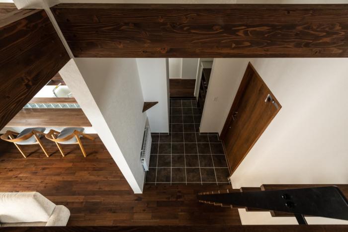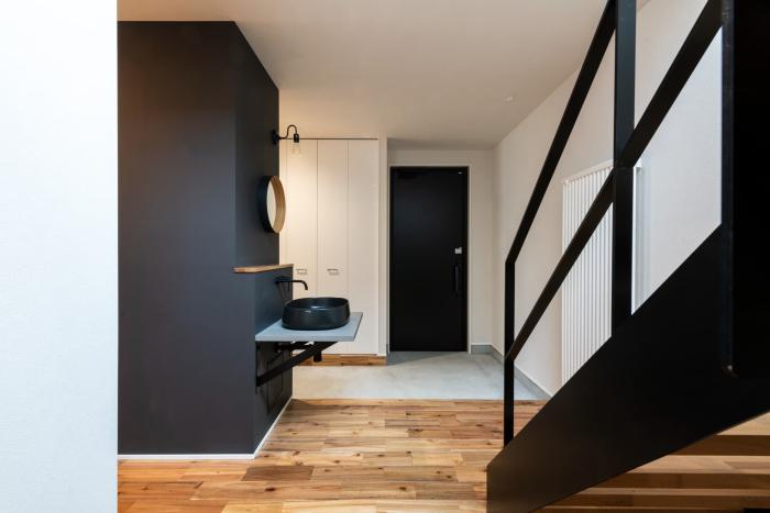 玄関ホールに広いスペースを確保できなくても、吹き抜けで縦に空間を伸ばせれば、インテリアの選択肢の幅も広がります。玄関のすぐそばに階段を設置する場合は、スケルトン階段を選ぶと、さらに広々とした印象に仕上がるでしょう。