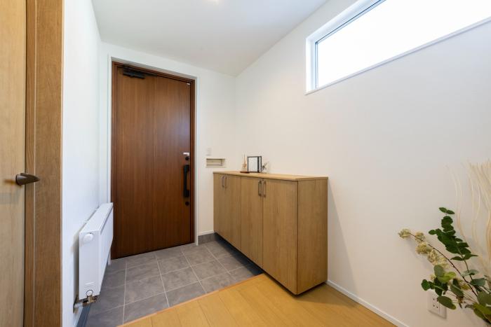 また、玄関は外と室内との行き来が多いほか、靴や傘などの保管によっても湿気がこもりやすい場所です。湿気はカビやにおいの原因になるため、通風の確保も欠かせません。窓や通風口の設置が難しい場合は、明かり取りの小窓や通風機能を備えた玄関ドアがおすすめです。見た目もおしゃれで、複数の問題を解決できます。