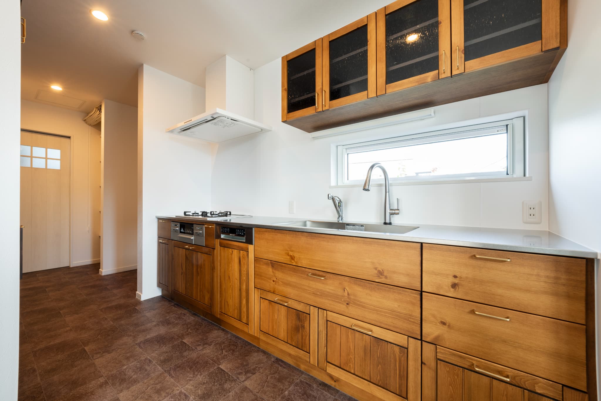 竹内建設で施工したキッチンの建築実例を3つ紹介します。それぞれレイアウトや間取りによって特徴が異なりますので、どんなキッチンにしたいか理想に近いものがあれば参考にしてみてください。