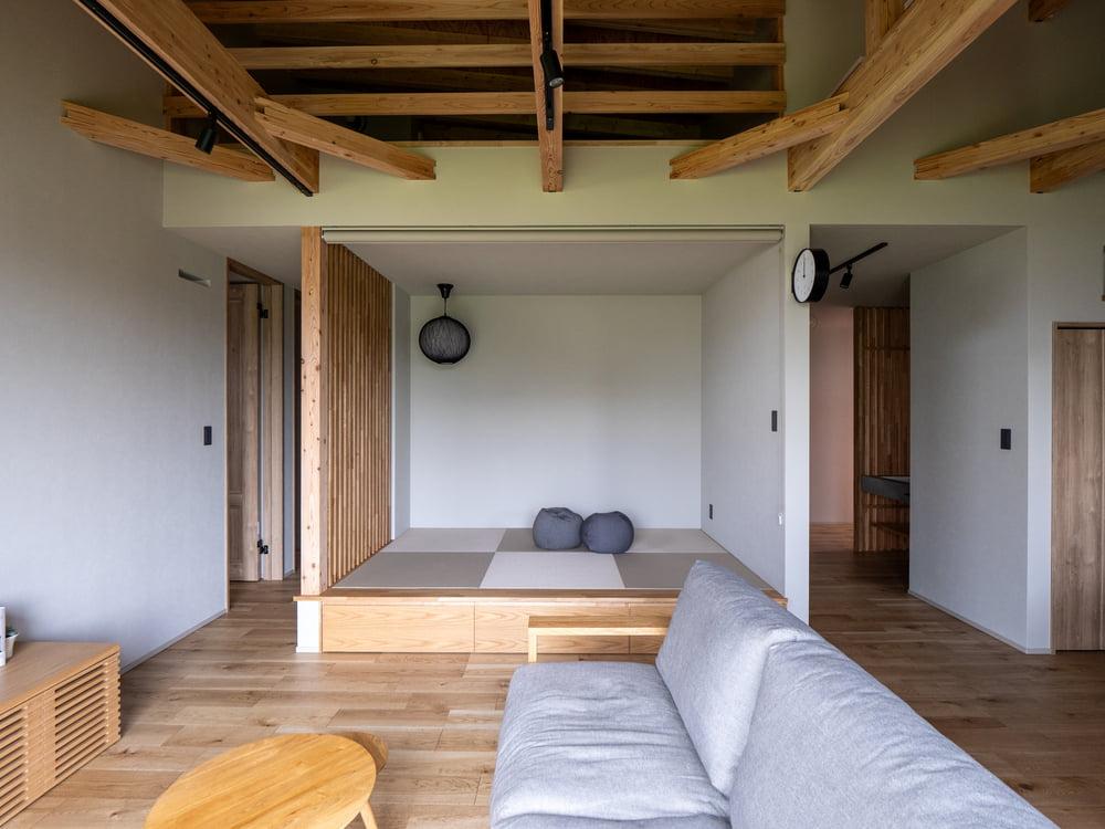 たとえば、リビングの一角だけ30〜40㎝ほど床を高くした小上がりスペースは「スキップフロア」と呼ばれるのが一般的です。一方、1階と2階の中間ほどの高さに床を設ける場合は「中二階」と呼ばれます。