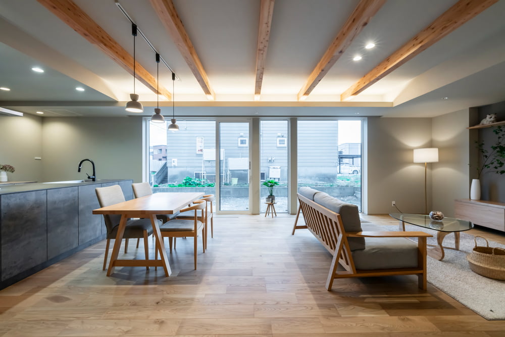 リビングの大きな掃き出し窓からは自然光が入り、明るく開放的な住まいになっています。