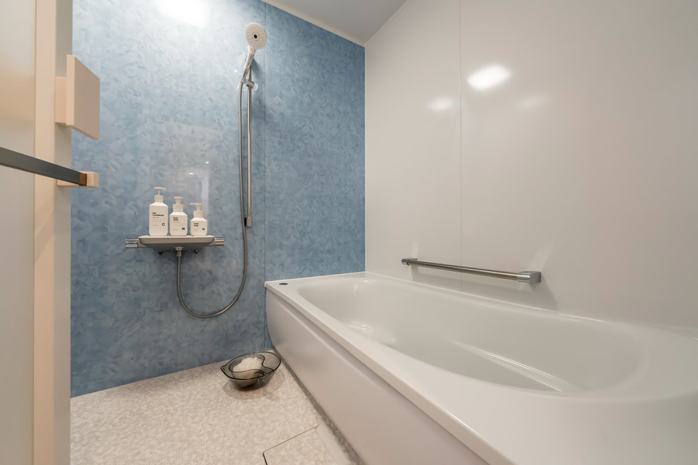 2点ユニットバスは、浴室内に浴槽と洗面台を備えたタイプです。主に賃貸マンションやホテルなどで多く採用されています。