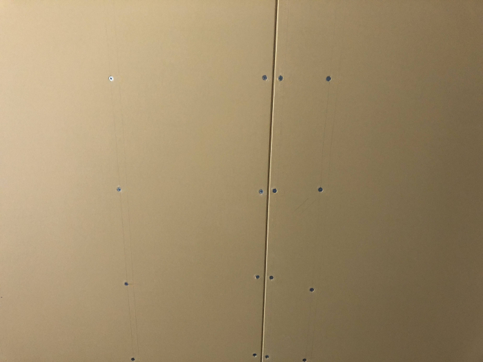 ビスで固定している耐火ボードはもちろんビスの穴が目立ちます。