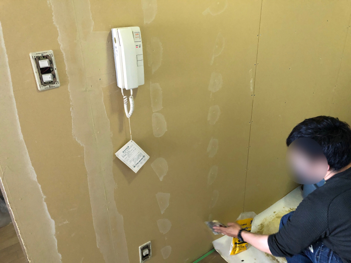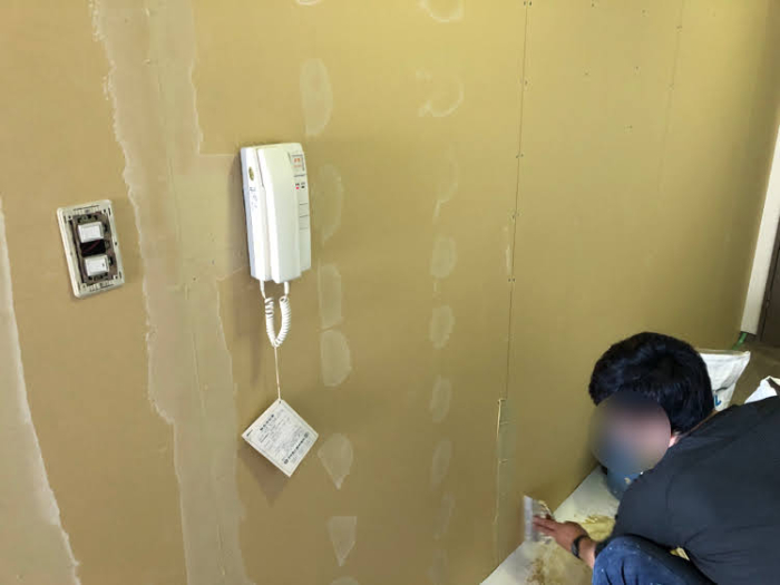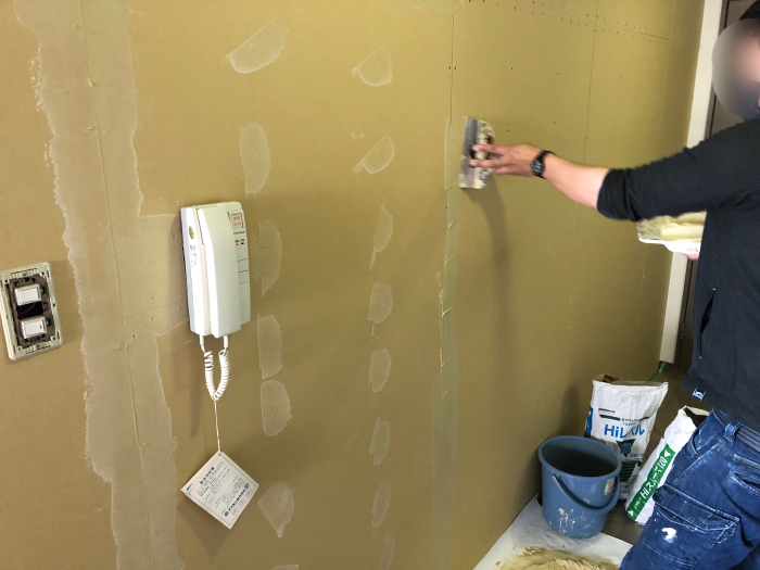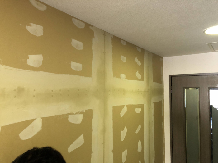 こうして穴がふさがったボードにクロスを貼る事で平らな壁が出来上がるのです。