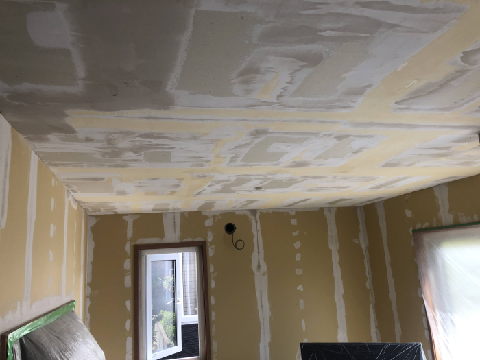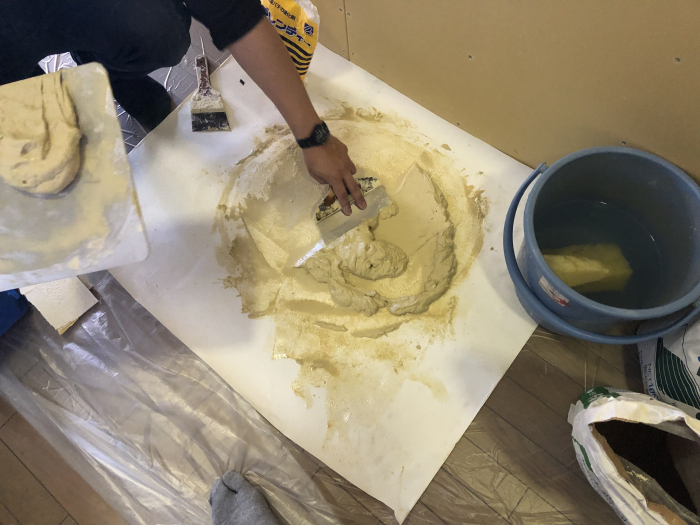 ボードのジョイント部分もパテを入れます。もうバンバン。