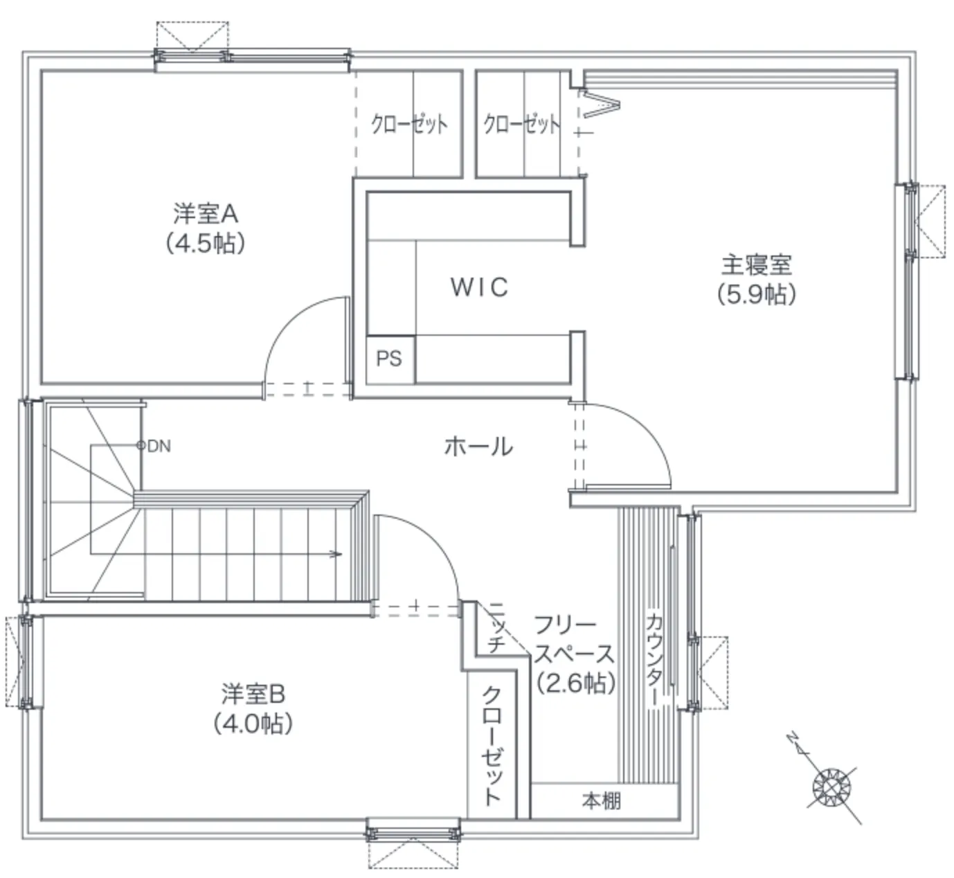 家の真ん中にある吹き抜けが家族をつなぐ -