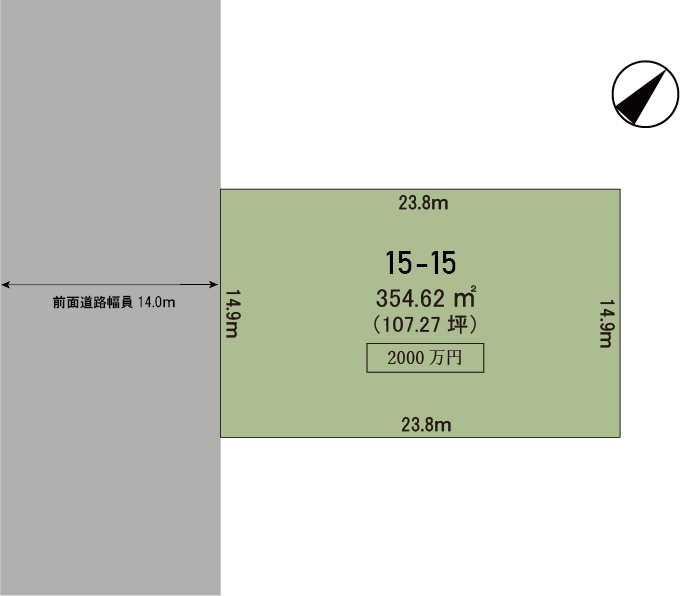 接道状況 | 南西14.0m幅員の公道に14.9m接する | ||