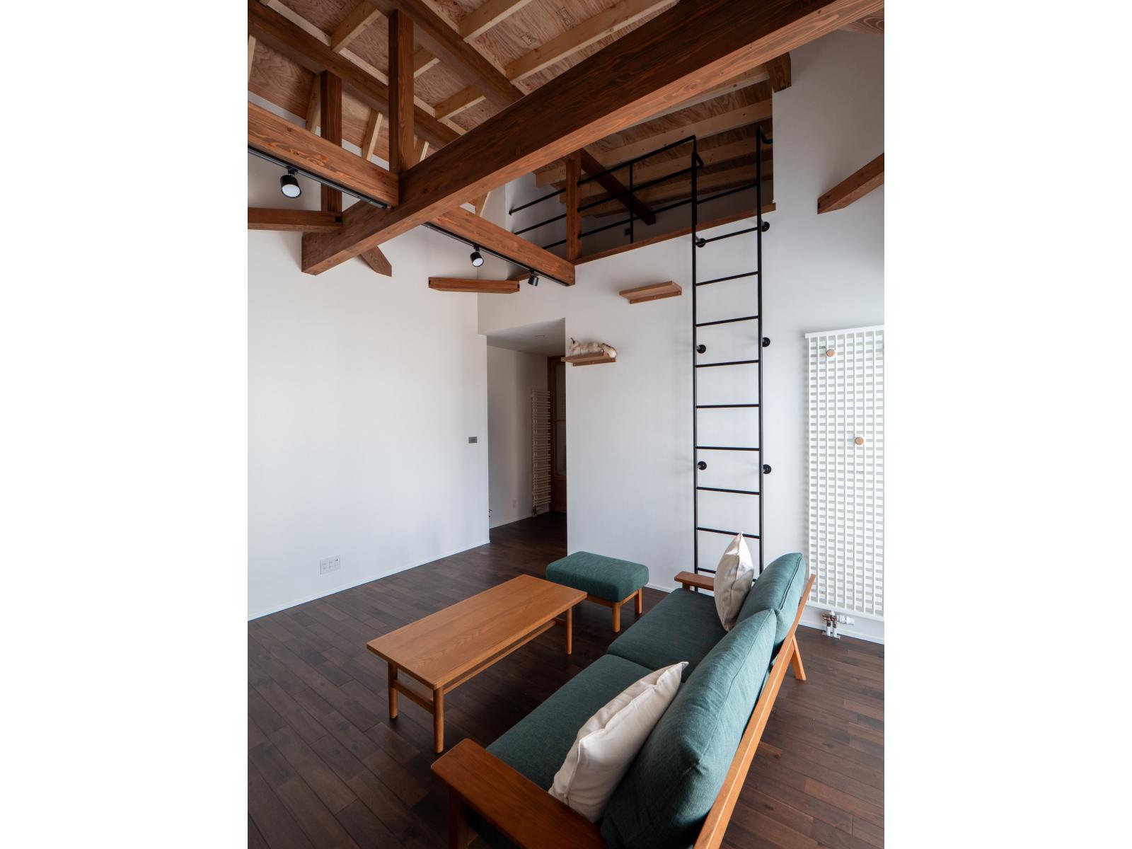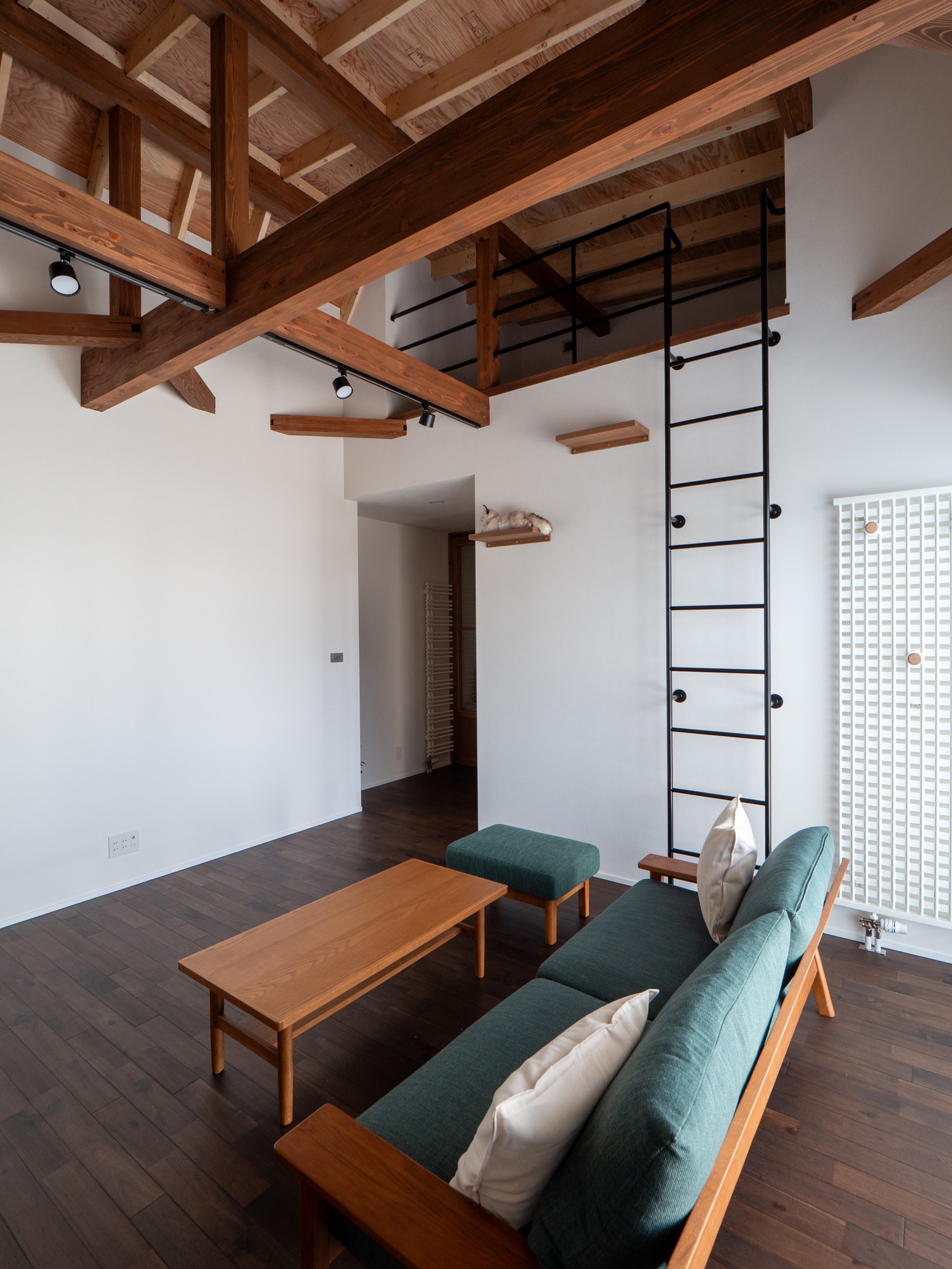 室内は、家族と2匹の猫のためのワンルーム的なプラン。