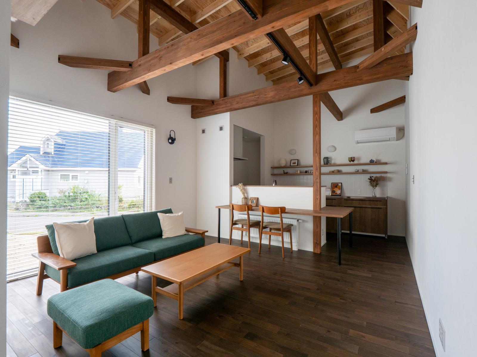 平屋でありながら吹き上げ天井やロフトを採用することで、