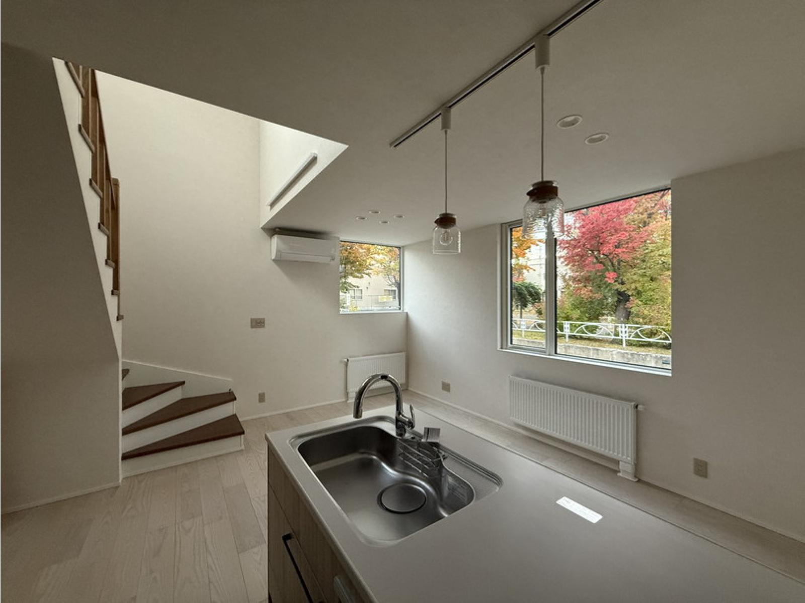 公園が目の前という立地を活かし、四季の移ろいを楽しめるよう、公園側に窓をたっぷりと設けました。