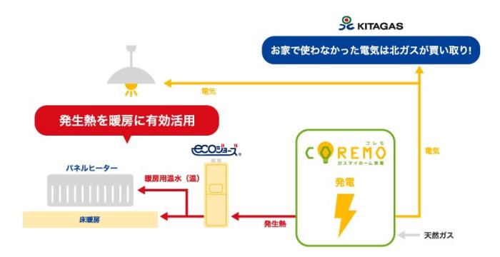 暖房すると発電し、お家で使わない電気は北ガスが買い取ります!