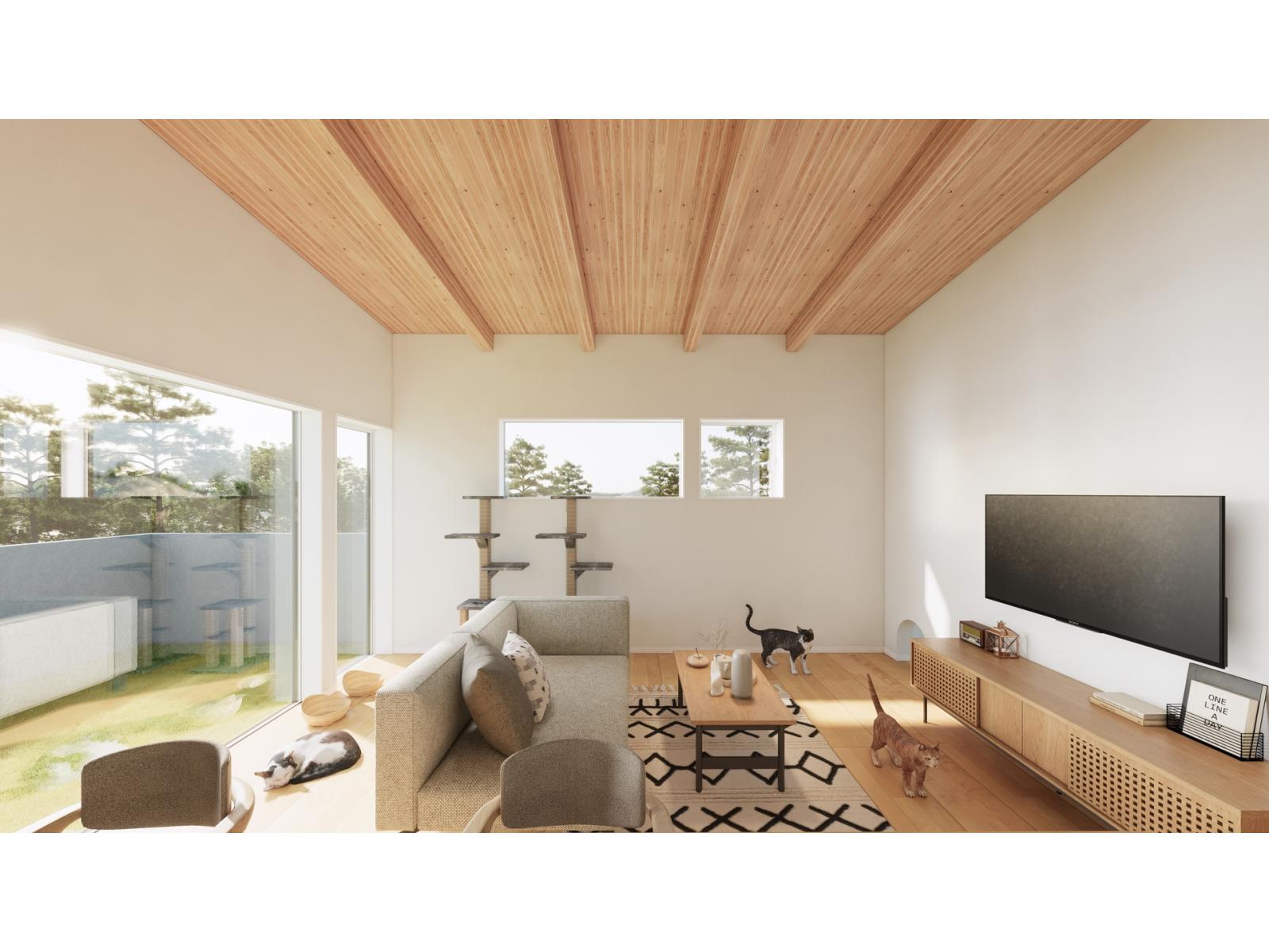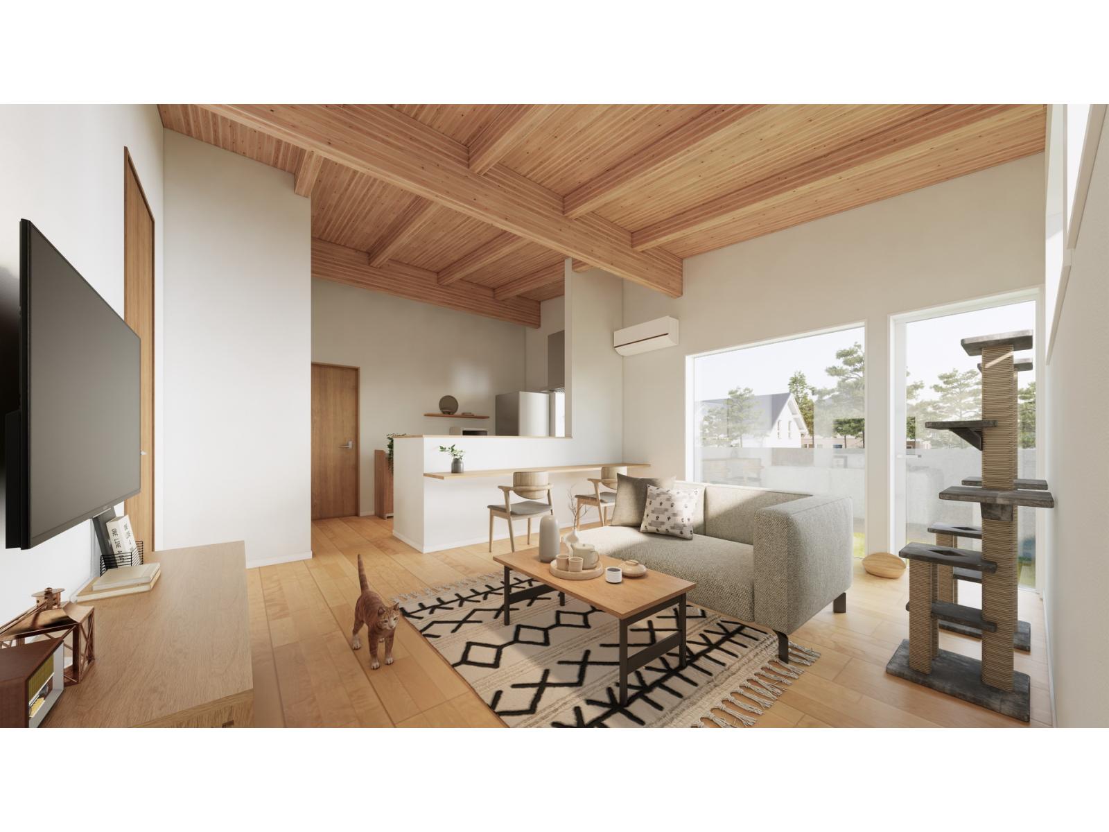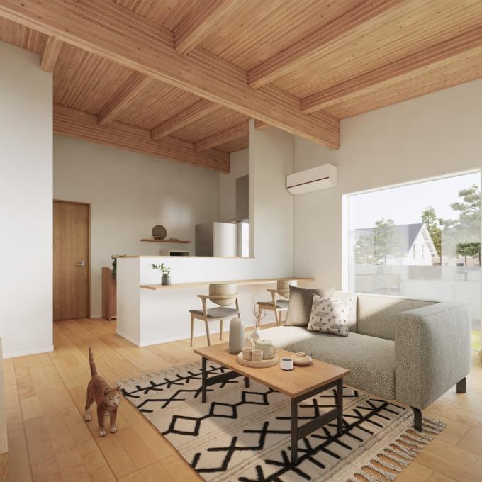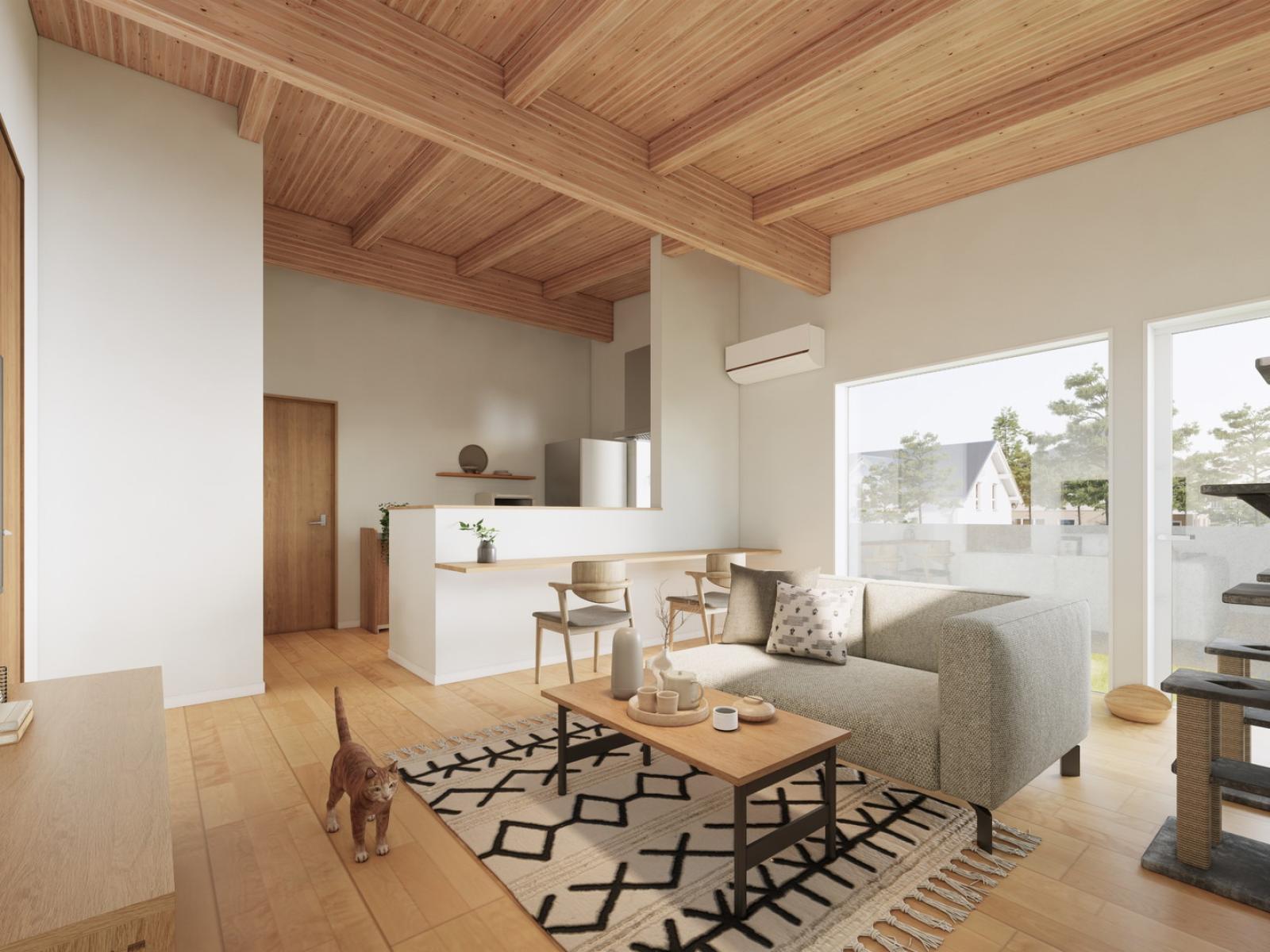 木の構造体が見える【現し天井】になっており、