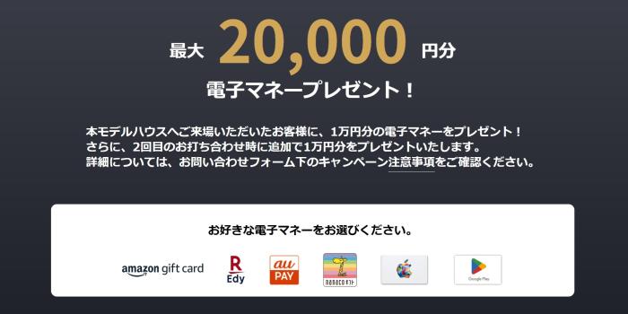 本本モデルハウスへご来場いただいたお客様に、1万円分の電子マネーをプレゼント!