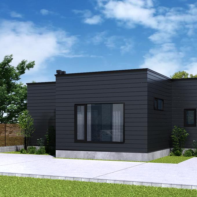 - シンプルな外観と木をあしらった温かみのあるファサード。