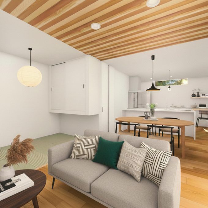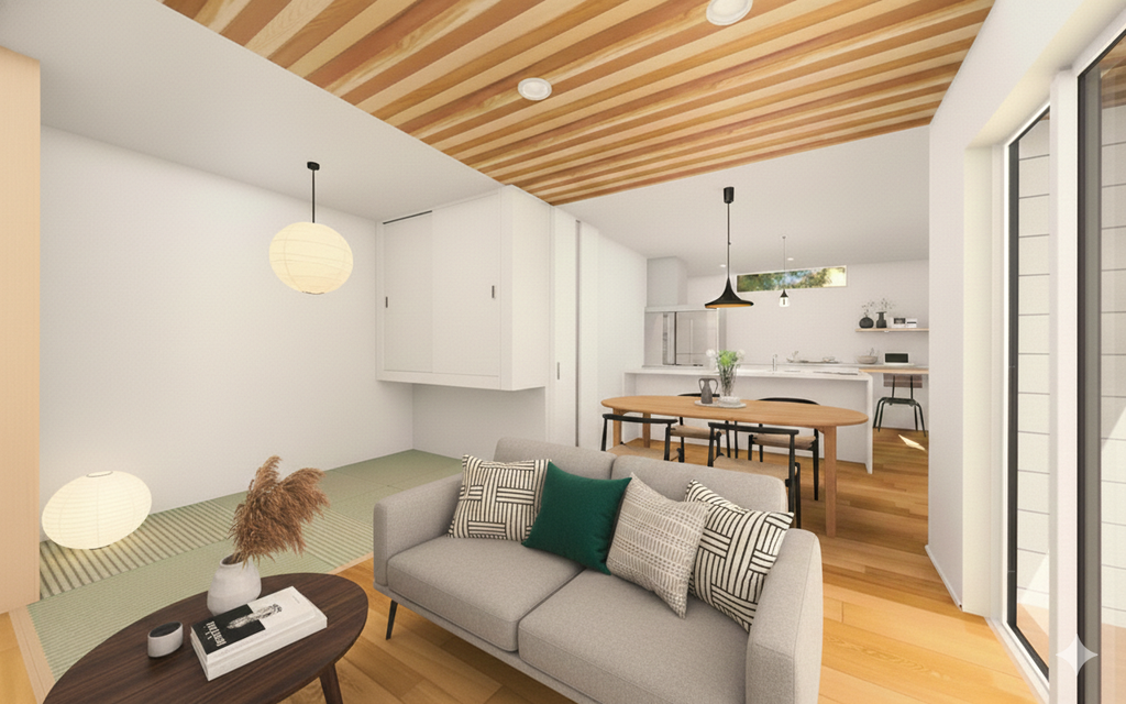 北欧と和の雰囲気を併せ持つ、人気の【ジャパンディスタイル】の内装もY様とICのこだわり。