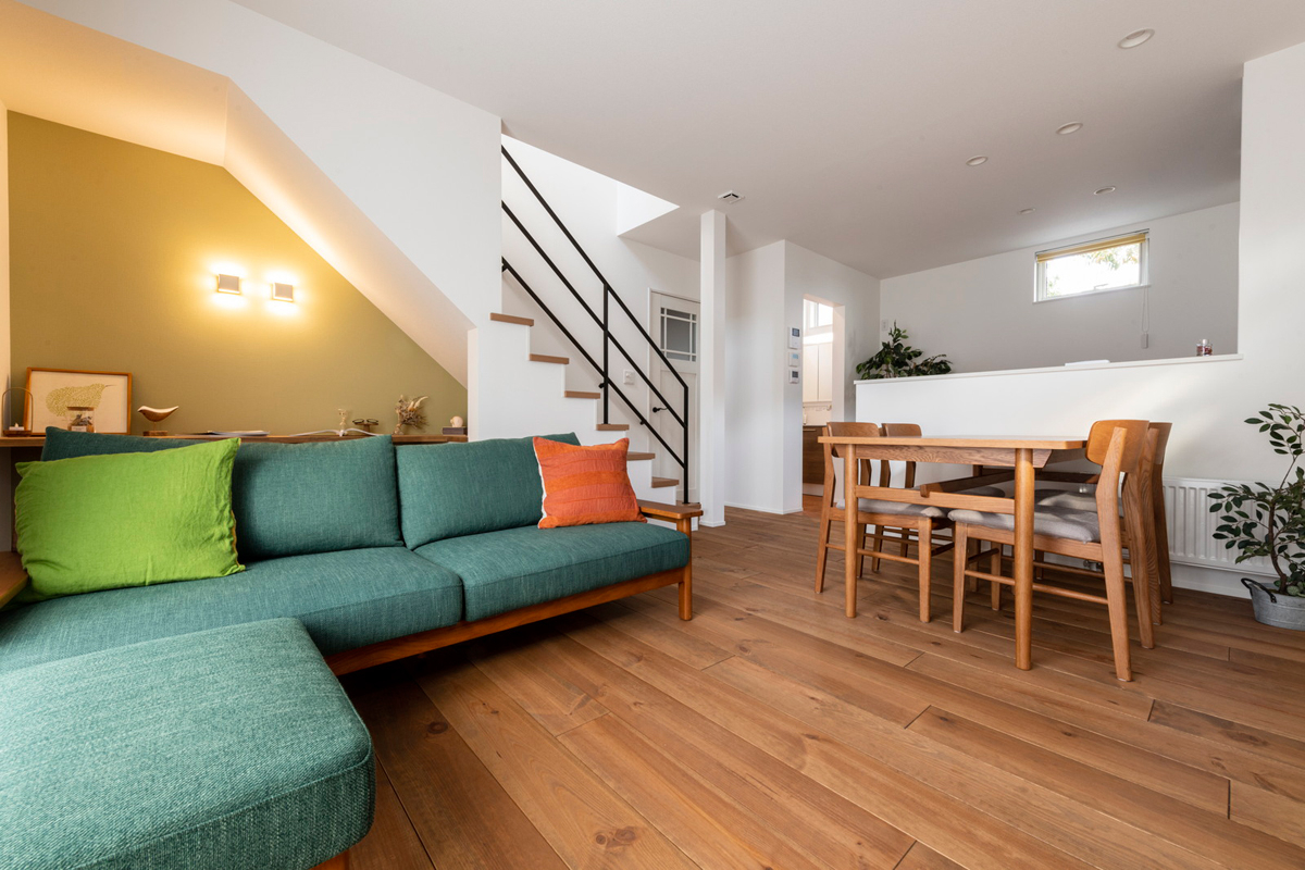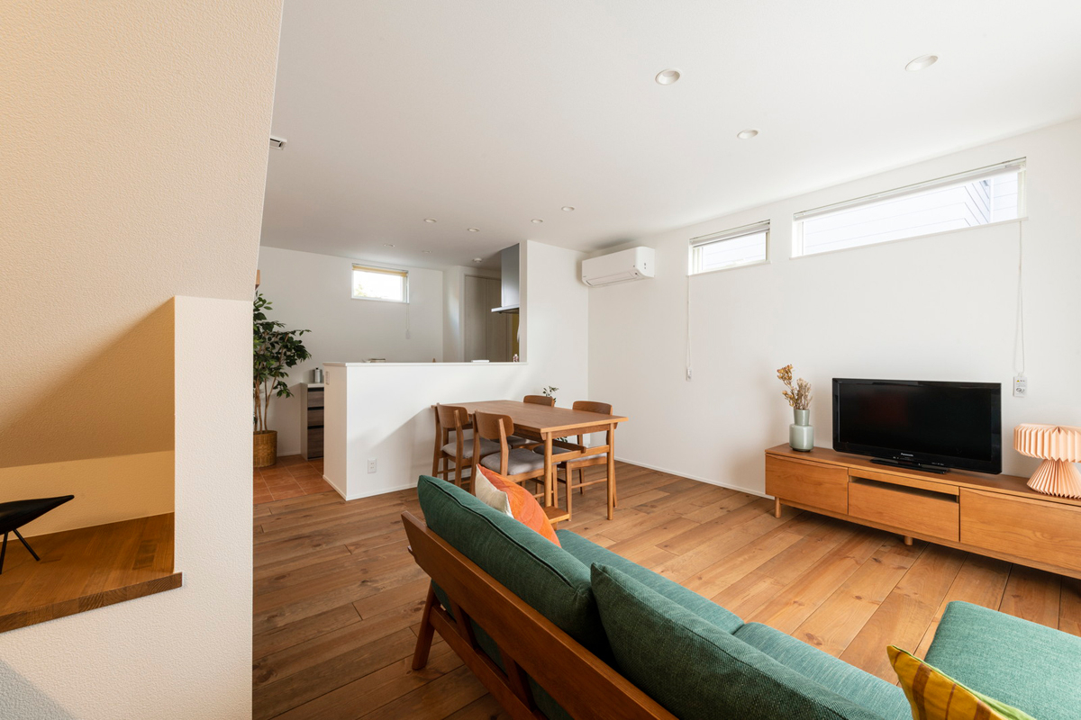 ・タケウチらしい、温かな雰囲気 ・28坪なのに回遊動線、納戸、WCL、SCL、フリースペースを実現 ・家族が集まるリビングにはみんなが使えるカウンターを設置