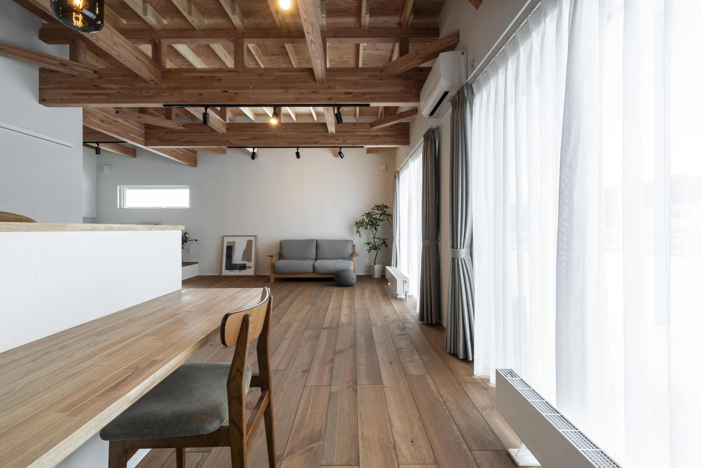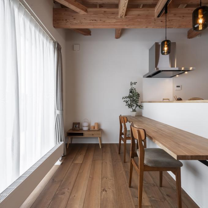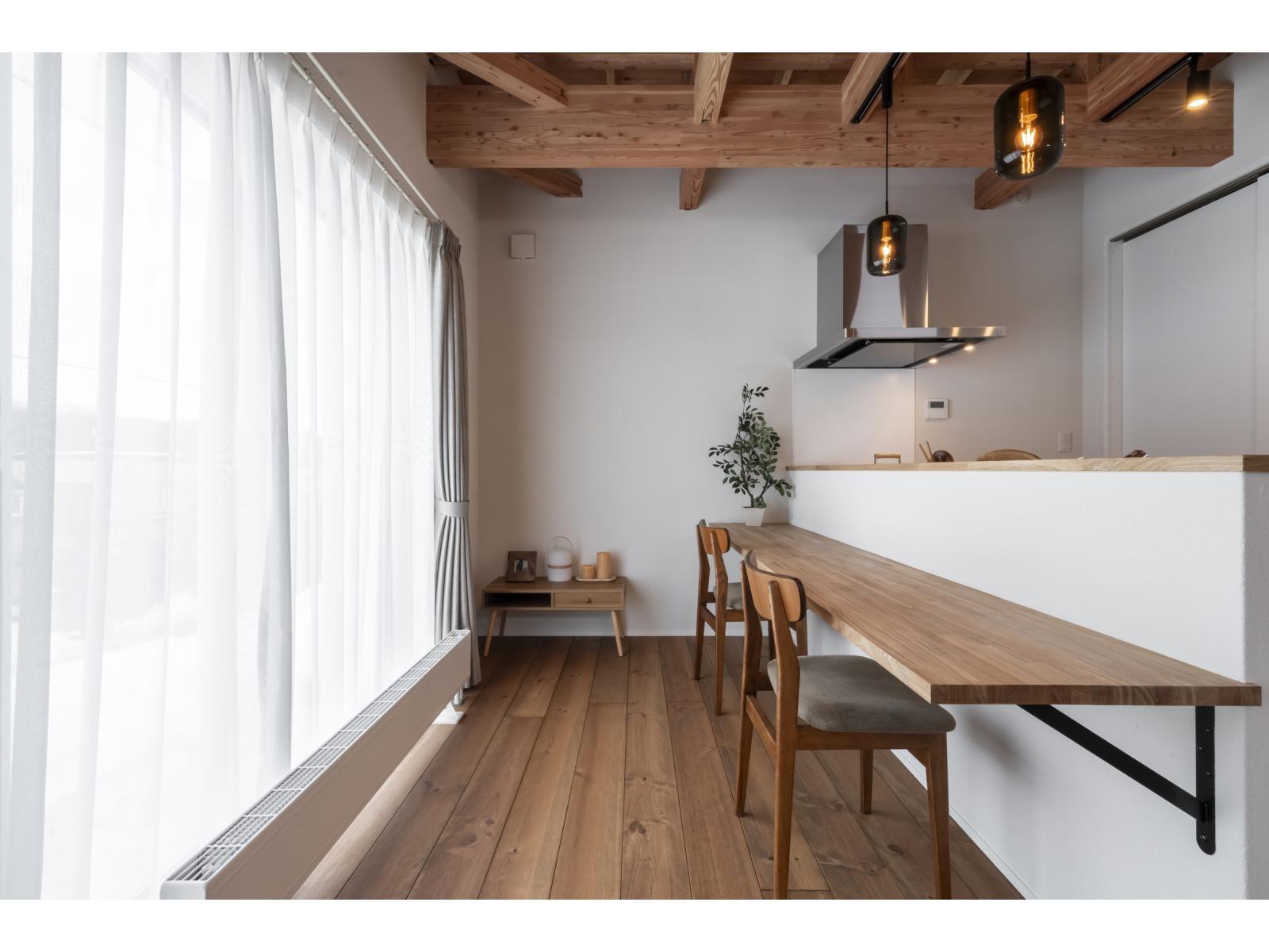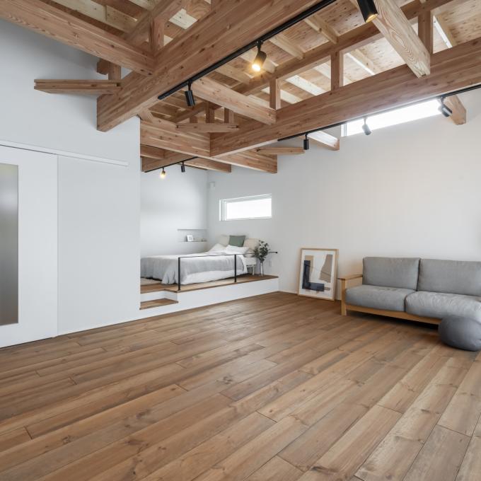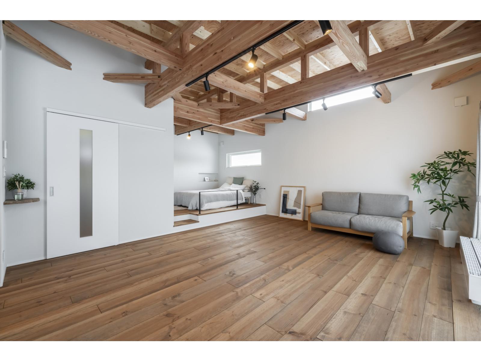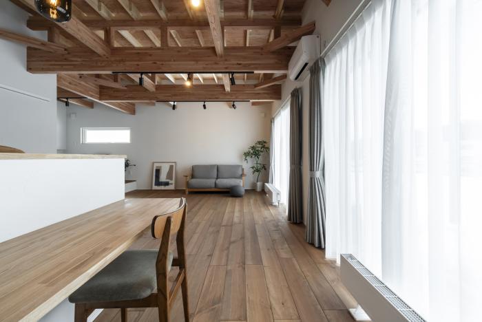 現しの梁と無垢床、塗り壁の心地よさ