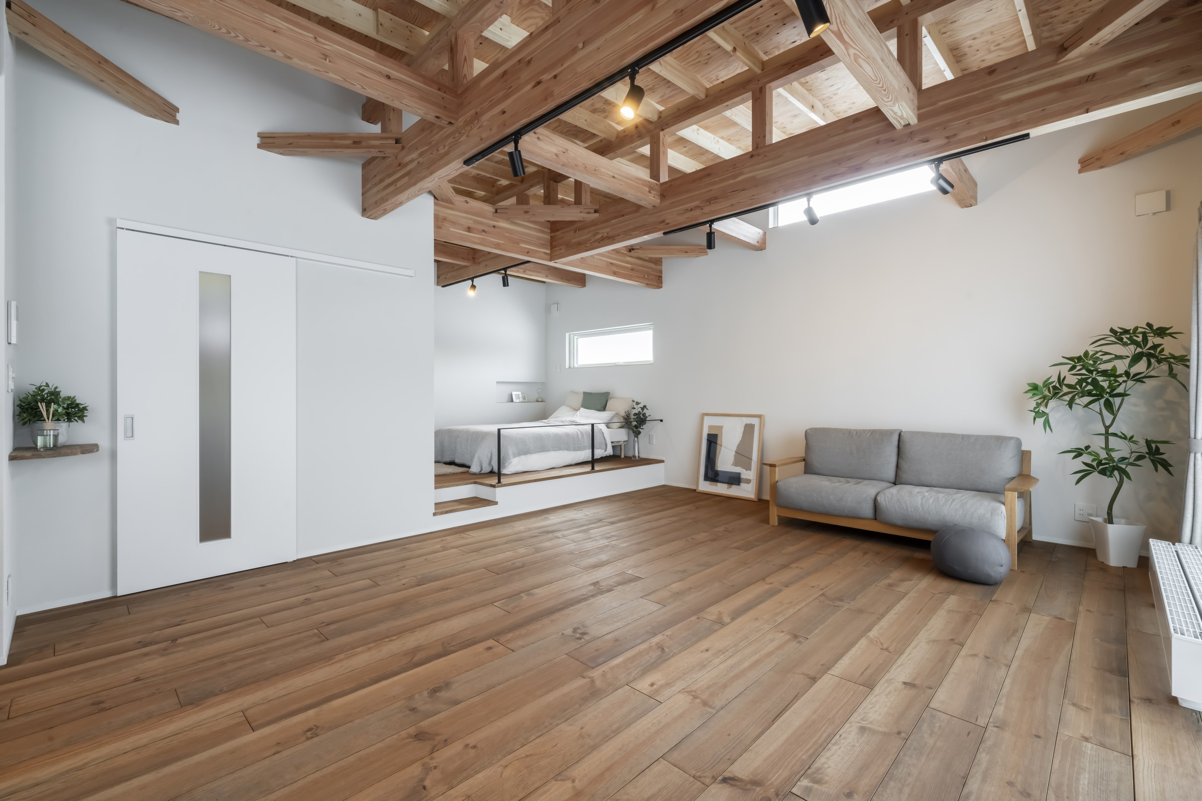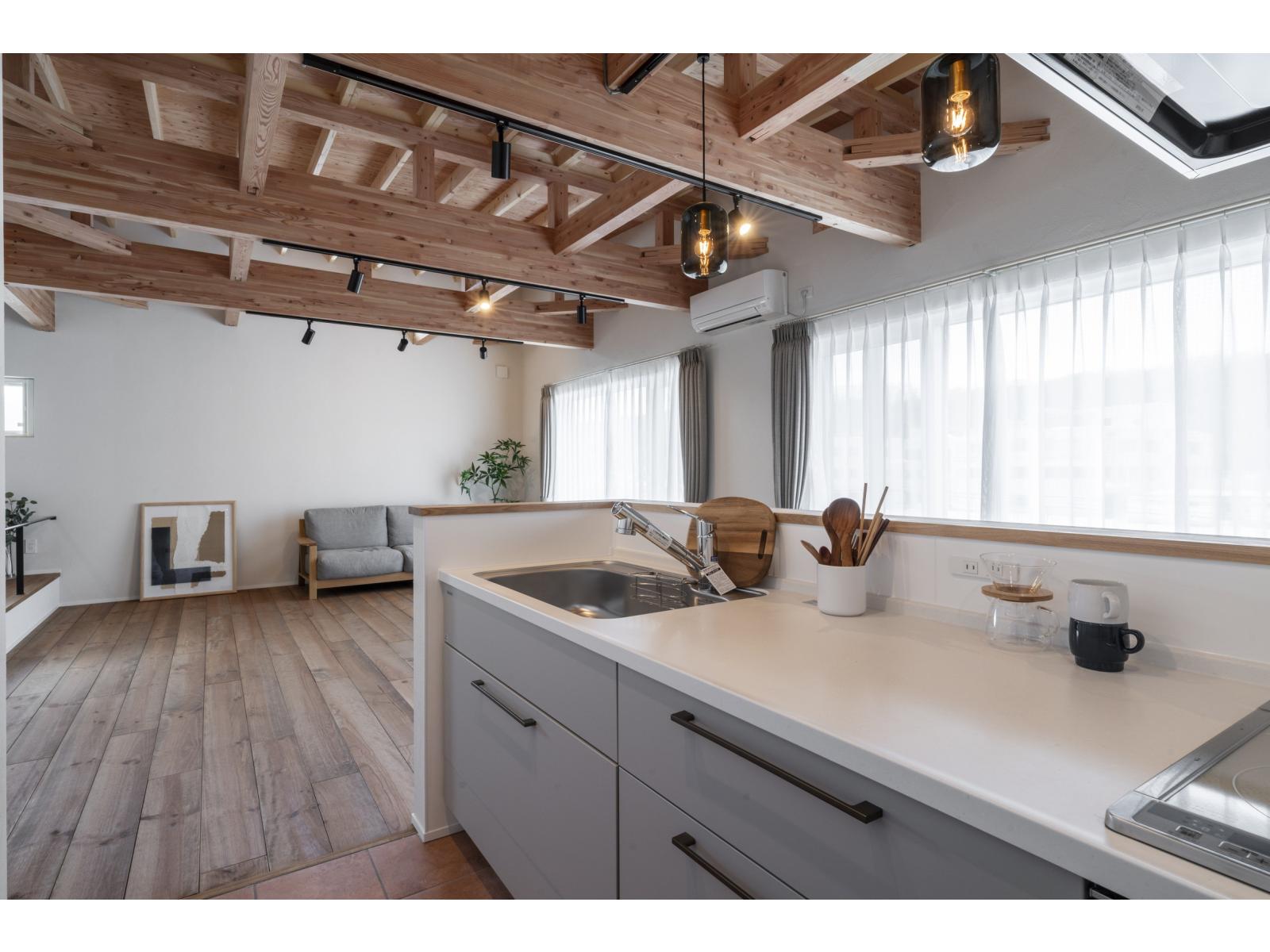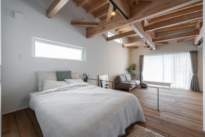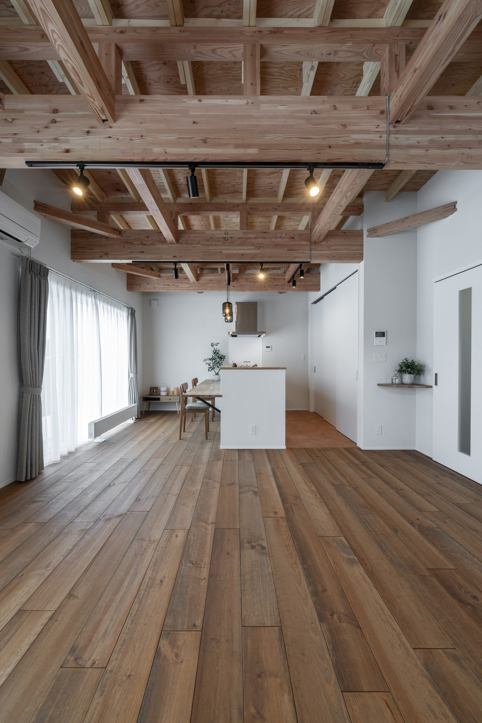 現しの梁と無垢床、塗り壁の心地よさ