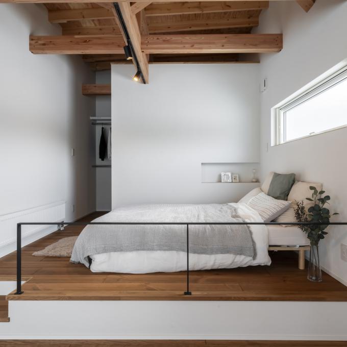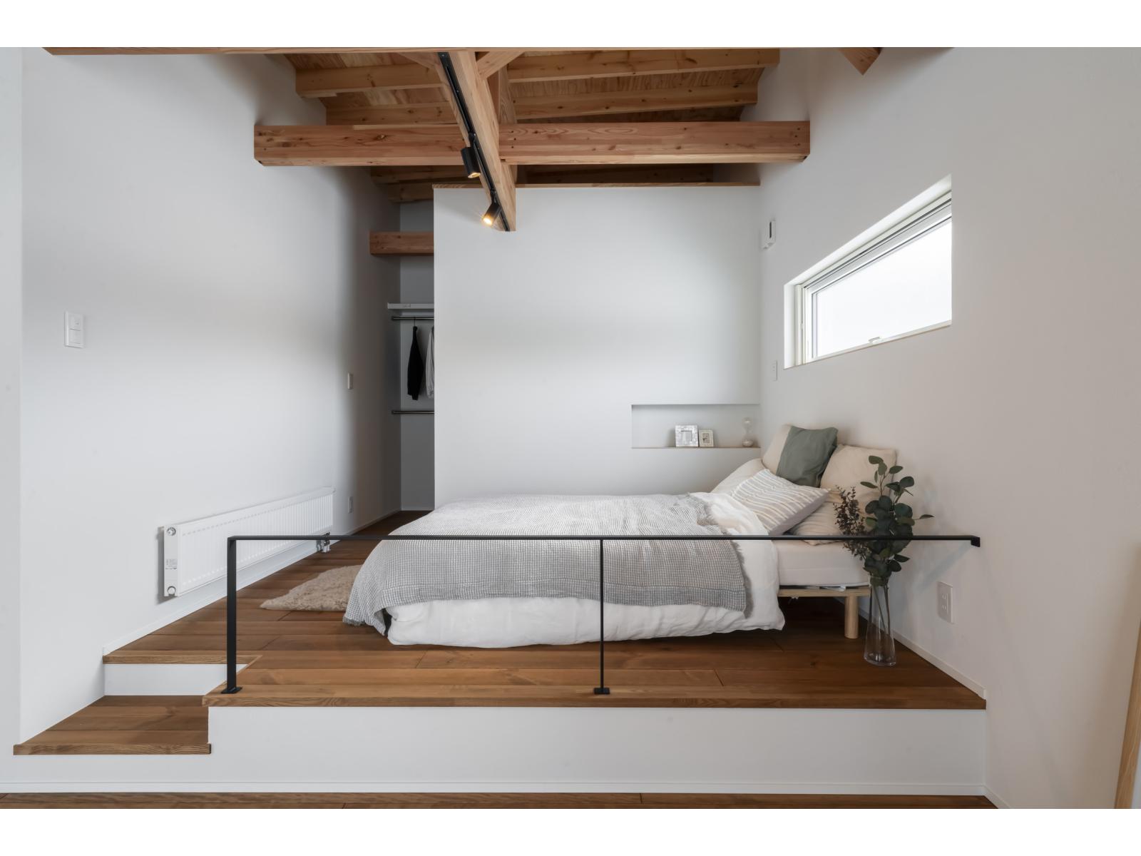 リビングから一間つづきの空間ですが、2段上がった小上がりにすることで立体感が感じられます。