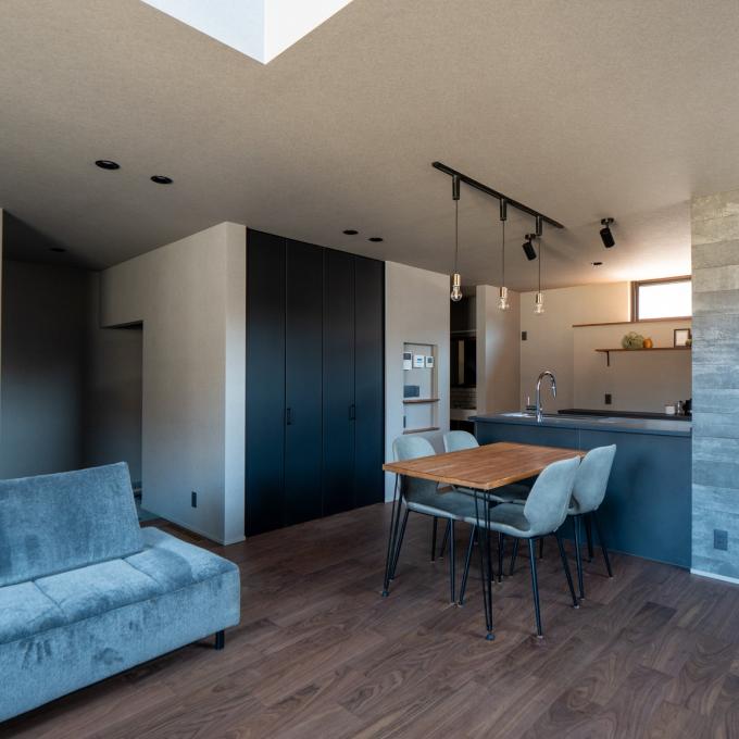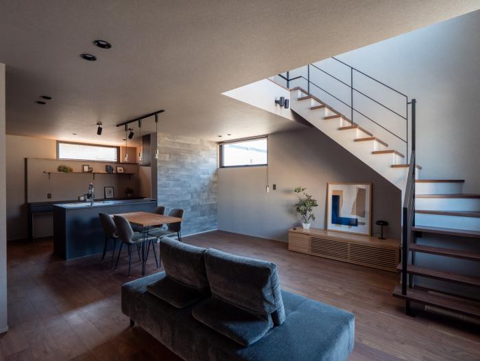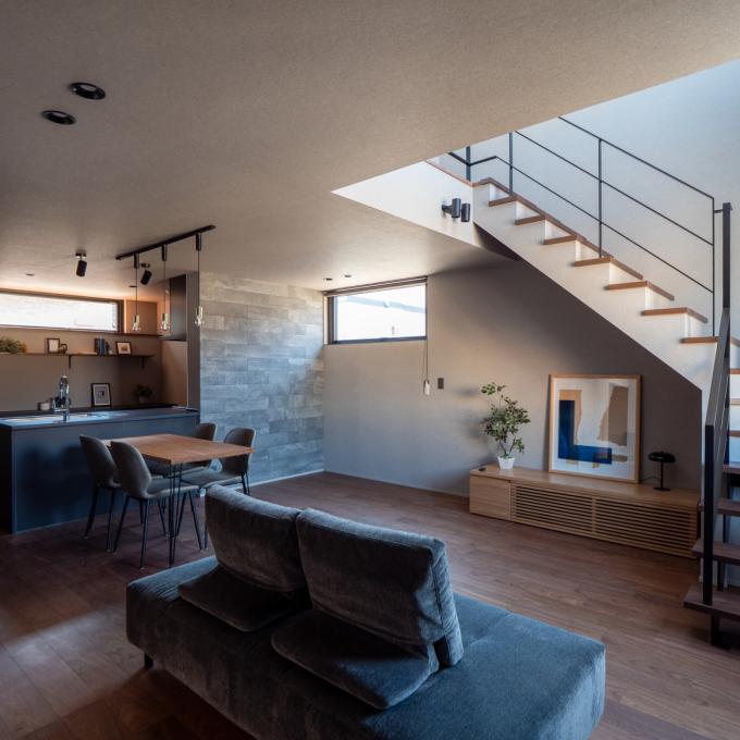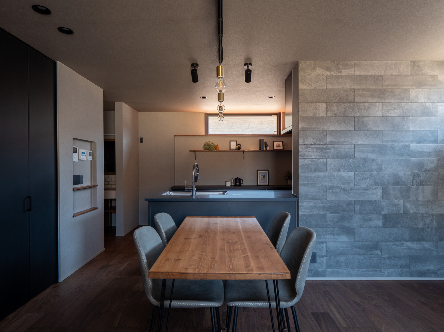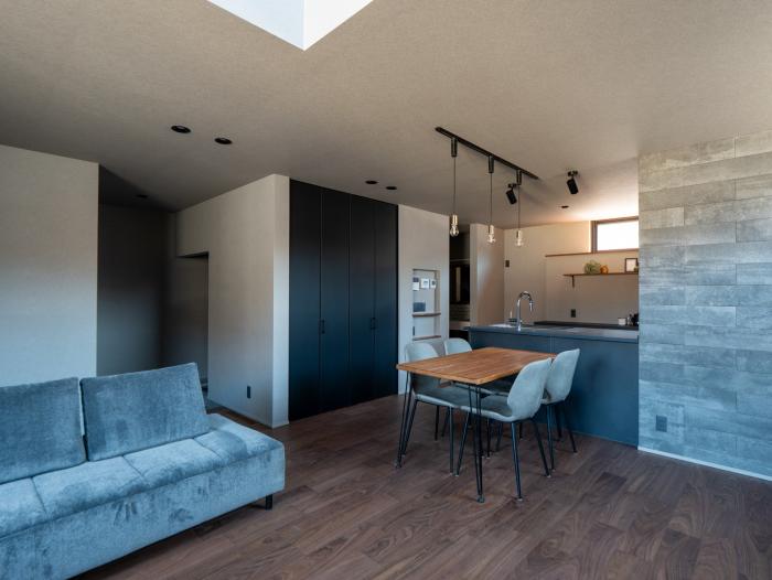 K様ご夫婦と弊社専属のインテリアコーディネーターでこだわったグレイッシュで統一した落ち着いた内装。