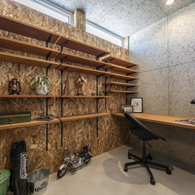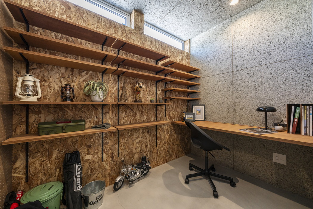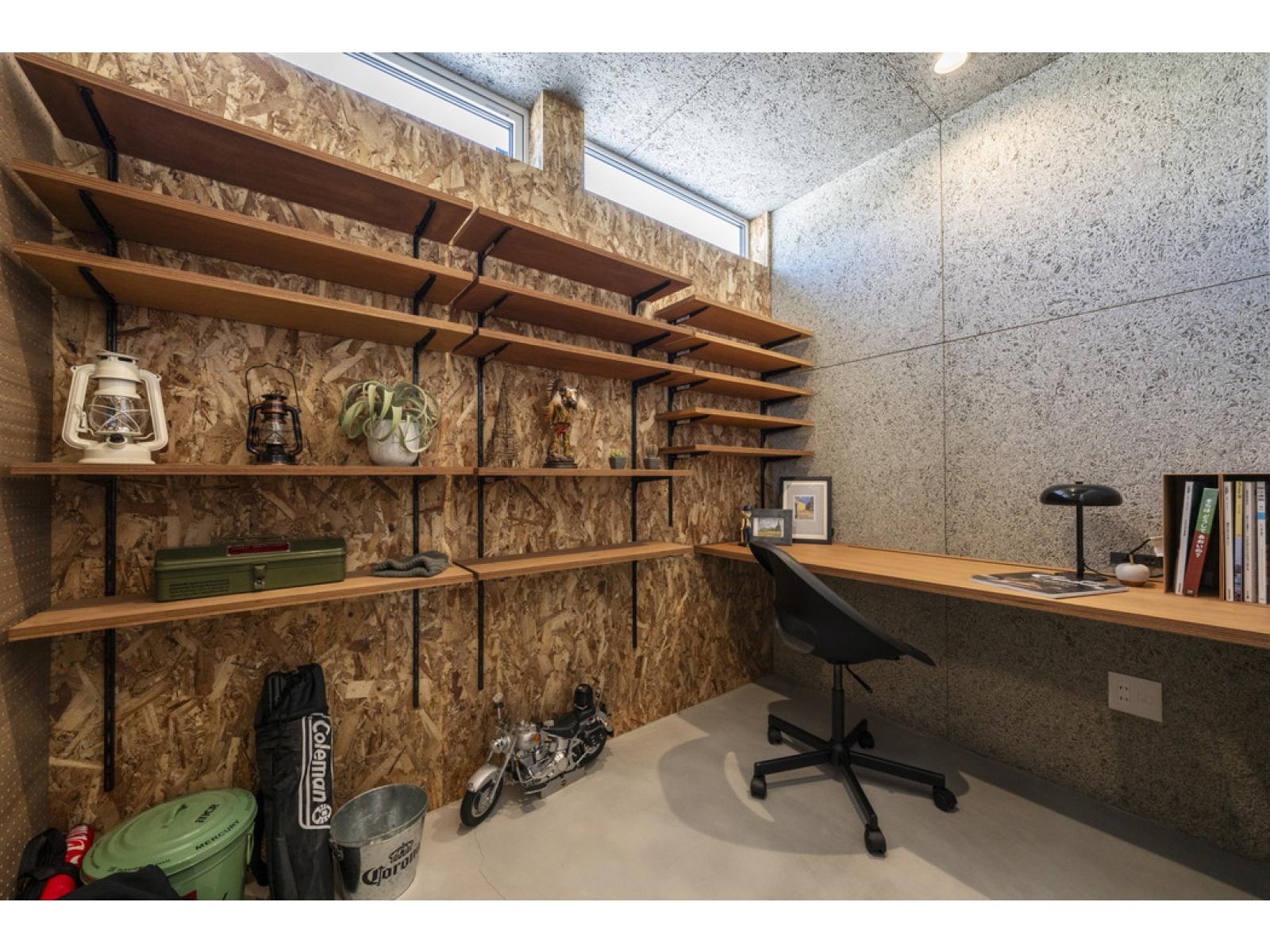 ご主人が趣味に没頭できる、ほどよいおこもり感が魅力の空間。